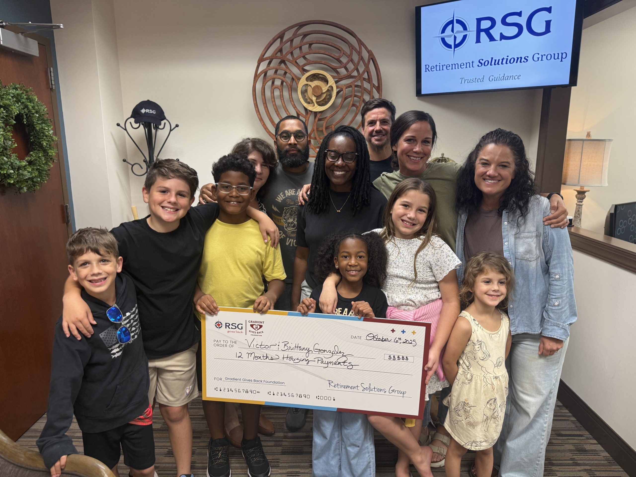 Retirement Solutions Group, operated by CEO Ryan Moore and CFO Chelsea Moore, supports the local community by giving back through various outreach programs. In partnership with Gradient Gives Back Foundation, “RSG Gives Back” has surprised a total of six families in the past six years with 12 months of housing payments.